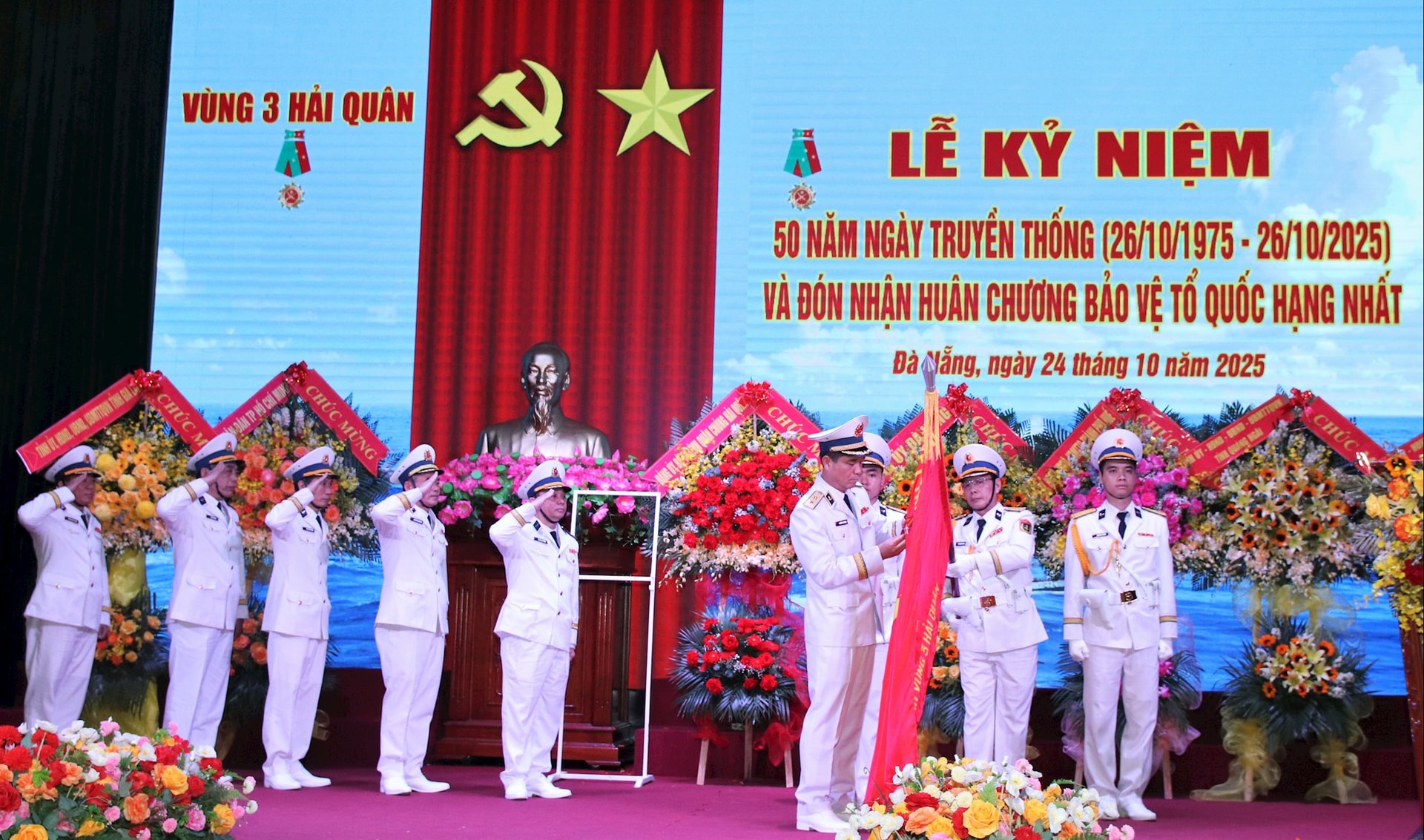 Chiều 24/10, tại Đà Nẵng, Đảng ủy, Bộ Tư lệnh Vùng 3 Hải quân long trọng tổ chức Lễ kỷ niệm 50 năm Ngày truyền thống (26/10/1975 – 26/10/2025) và đón nhận Huân chương Bảo vệ Tổ quốc hạng Nhất. Dự buổi lễ có Phó Đô đốc Nguyễn An Phong, Bí thư Đảng ủy, Chính ủy Quân chủng Hải quân; Đại tá Phạm Anh Tuấ ...