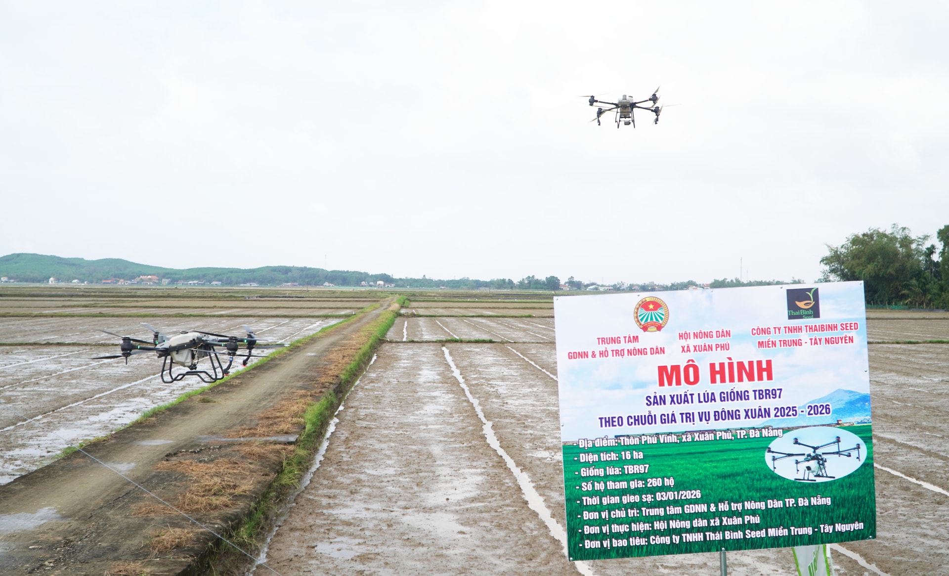 Ông Bùi Quốc Yên, Giám đốc Trung tâm Giáo dục nghề nghiệp và Hỗ trợ Nông dân thành phố Đà Nẵng cho biết, vụ Đông Xuân 2025 - 2026, Trung tâm phối hợp Hội Nông dân xã Xuân Phú triển khai mô hình sản xuất lúa giống TBR97 với quy mô 16ha, có 260 hộ hội viên tham gia.