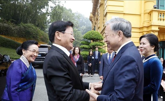 Sáng 26/1, Lễ đón chính thức Tổng Bí thư, Chủ tịch nước Thongloun Sisoulith cùng Phu nhân và Đoàn đại biểu cấp cao Đảng, Nhà nước Lào được tổ chức trọng thể tại Phủ Chủ tịch theo nghi thức cao nhất dành cho nguyên thủ quốc gia. Tổng Bí thư Tô Lâm và Phu nhân chủ trì Lễ đón.