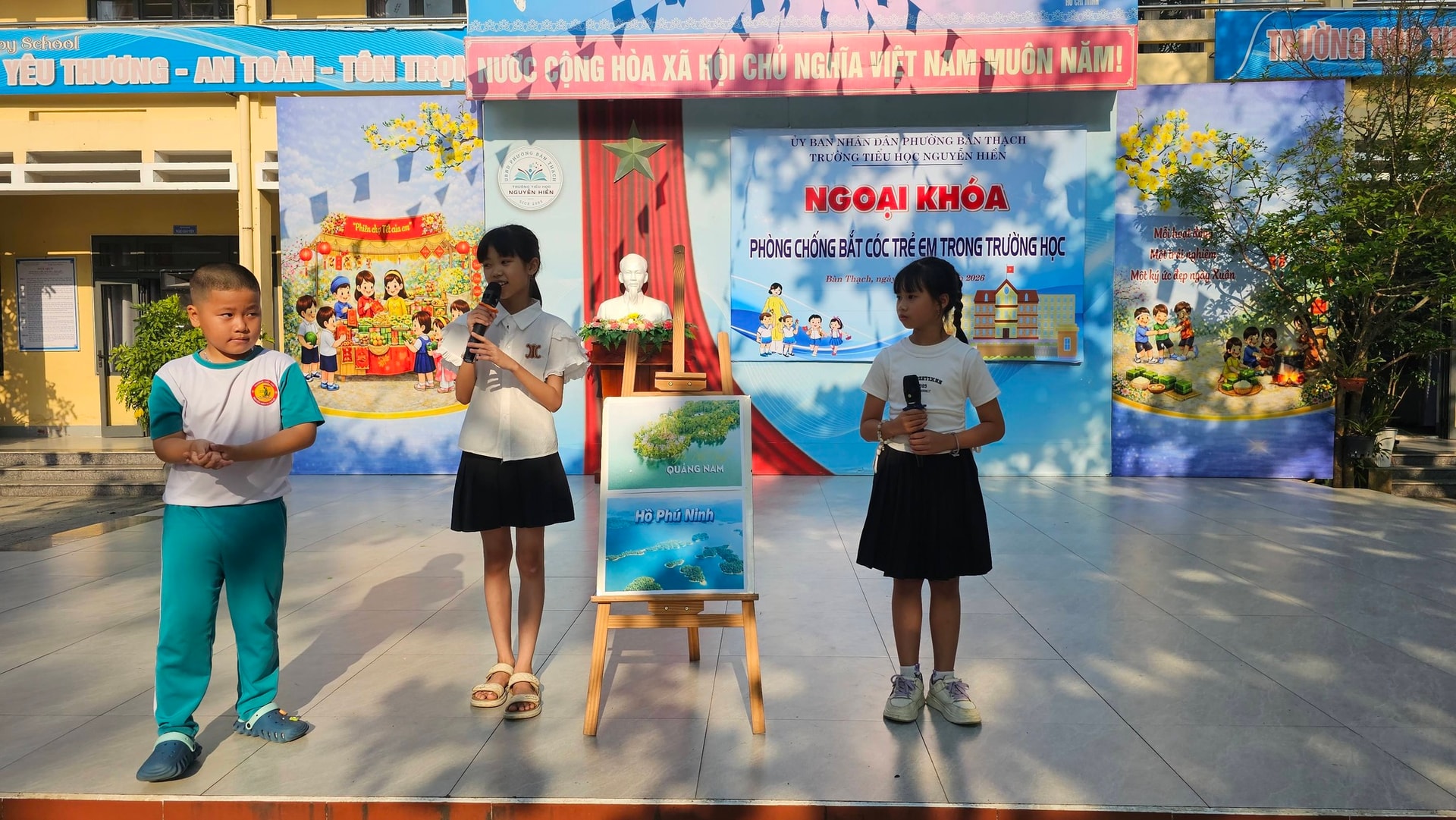Học sinh Trường Tiểu học Nguyễn Hiền tự tin thuyết trình tại các hoạt động ngoại khóa. Ảnh: T.H.