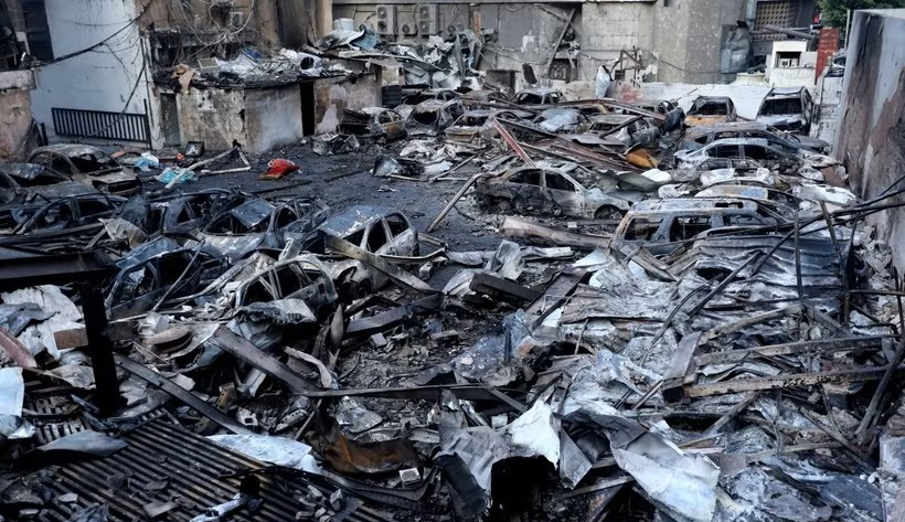 Cảnh đổ nát sau cuộc không kích của Israel tại Beirut, Liban.