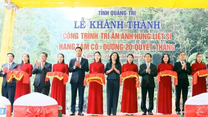 Cách đây 53 năm, ngày 14/11/1972, tại vị trí này trên đường 20 Quyết thắng, 8 thanh niên xung phong và 5 chiến sĩ pháo binh đã anh dũng hy sinh khi đang làm nhiệm vụ. Hang Tám Cô đã được Thủ tướng Chính phủ xếp hạng Di tích quốc gia đặc biệt theo Quyết định số 2383/QĐ-TTg ngày 9/12/2013. Ngày 28/9, công trình tôn tạo Di tích quốc gia đặc biệt hang Tám Cô được khởi công xây dựng. Đến nay, Công trình hoàn thành đúng dịp kỷ niệm 53 năm ngày hy sinh của 13 liệt sĩ tại hang Tám Cô. Trong quá trình tôn tạo khu vực cửa hang bị sập vào tháng 11/1972, lực lượng chức năng đã phát hiện hài cốt và di vật, xác nhận định được danh tính của nhiều liệt sĩ. Tỉnh Quảng Trị tổ chức trọng thể lễ viếng, truy điệu và an táng hài cốt các liệt sĩ ngôi mộ chung ở ngay vị trí các liệt sĩ đã hy sinh, để tưởng nhớ và tri ân những người con ưu tú đã anh dũng hy sinh vì độc lập, tự do của Tổ quốc. Ngôi mộ chung của 13 liệt sĩ được xây dựng theo phong tục truyền thống của dân tộc; vật liệu đá được lấy từ Thanh Hóa và một số tỉnh là quê hương của các liệt sĩ. Tại buổi lễ, các đại biểu đã thực hiện nghi thức dâng hoa, dâng hương tưởng niệm, phát biểu tri ân, tặng quà cho thân nhân liệt sĩ, cắt băng khánh thành và viếng công trình tôn tạo. Sau phần lễ, Ban tổ chức tổ chức lễ cầu siêu tưởng niệm các Anh hùng liệt sĩ đã anh dũng hy sinh trên tuyến đường 20 Quyết thắng. Dịp này, bà Ngô Phương Ly, phu nhân Tổng Bí thư Tô Lâm đã tặng các phần quà cho thân nhân 13 liệt sĩ./.