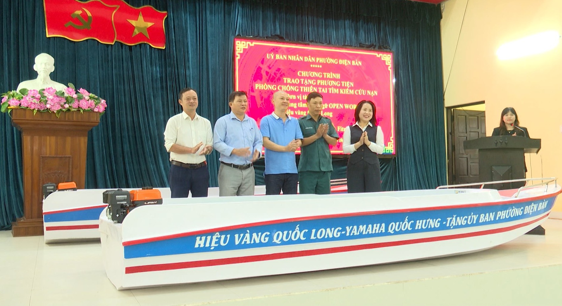 Trao tặng Cano cứu hộ cho UBND phường Điện Bàn.