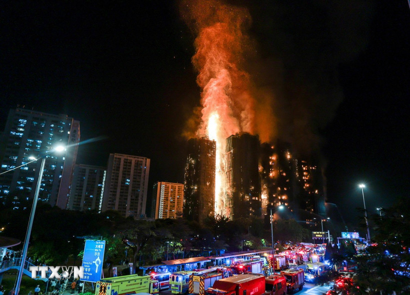 Hiện trường vụ cháy chung cư ở Hong Kong (Trung Quốc) ngày 26/11/2025