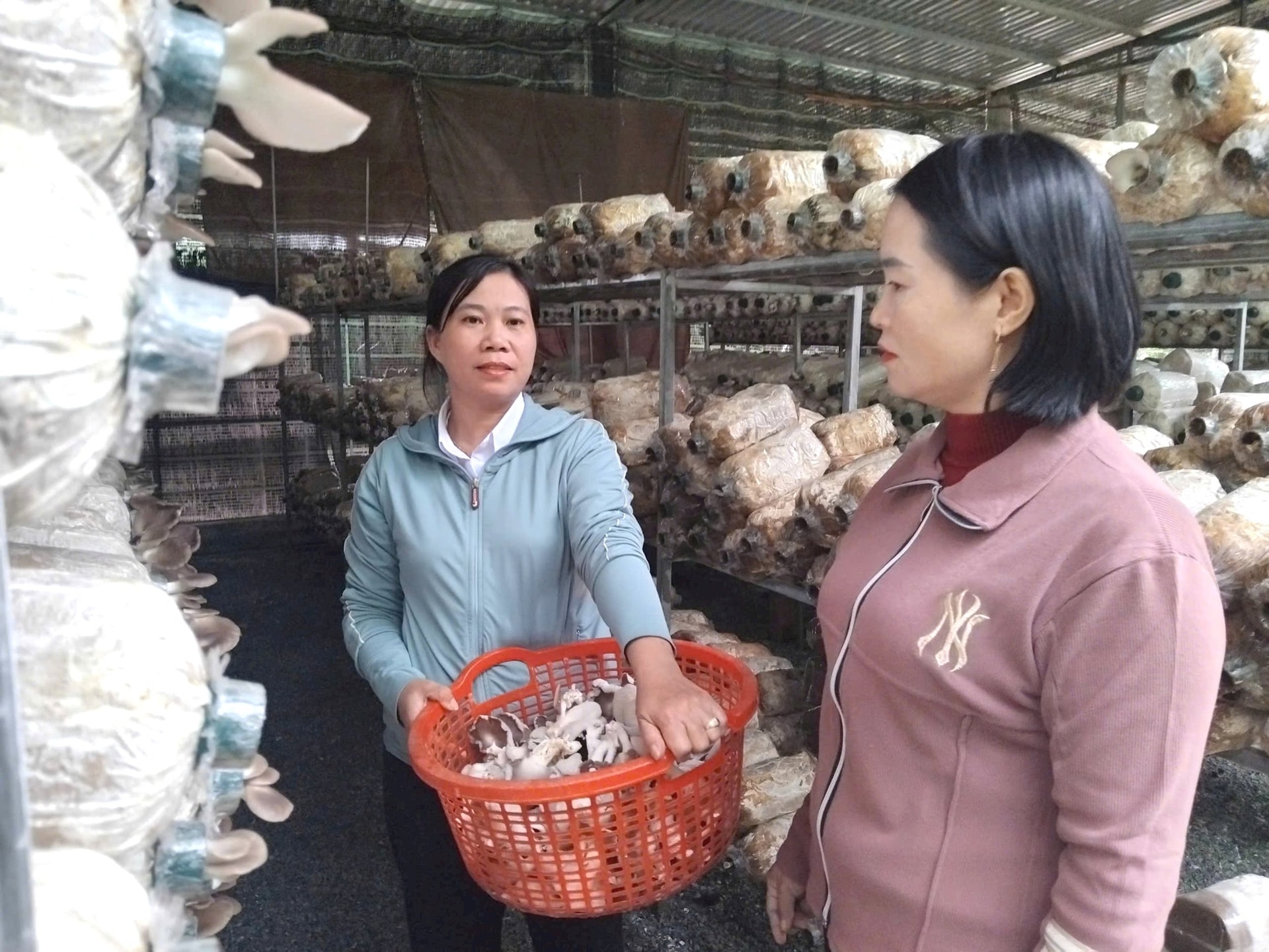 Mô hình trồng nấm bào ngư của chị Lê Thị Lý (thôn An Phước)
