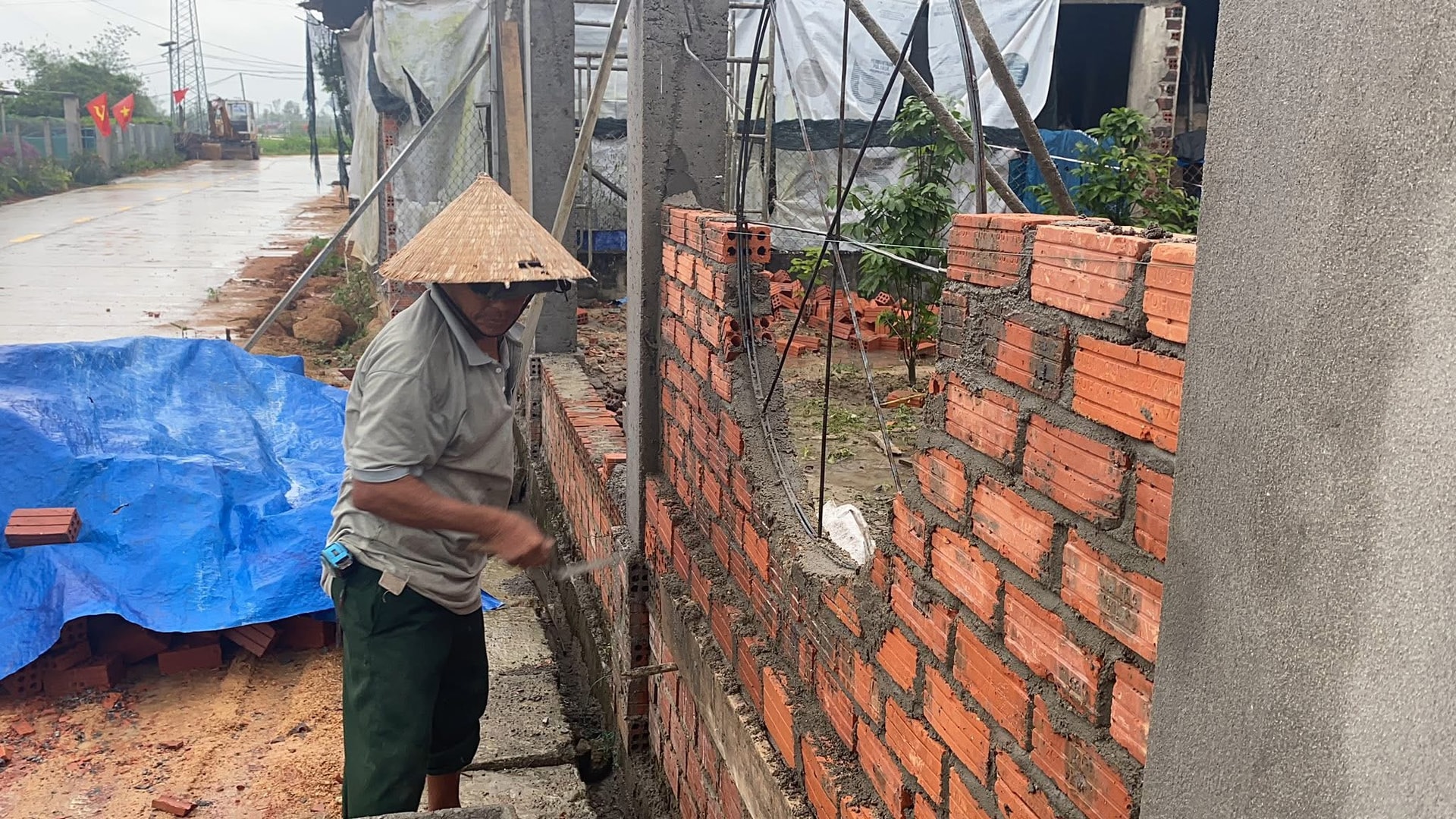 Người dân thôn Xuân Định xây nhà, chỉnh trang hàng rào sau khi tuyến đường ĐX1 được mở rộng. Ảnh: V.D