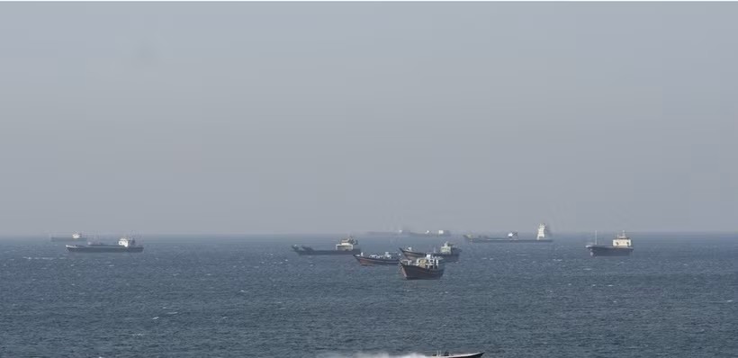 Tàu thuyền di chuyển trên eo biển Hormuz, ngoài khơi tỉnh Musandam, Oman