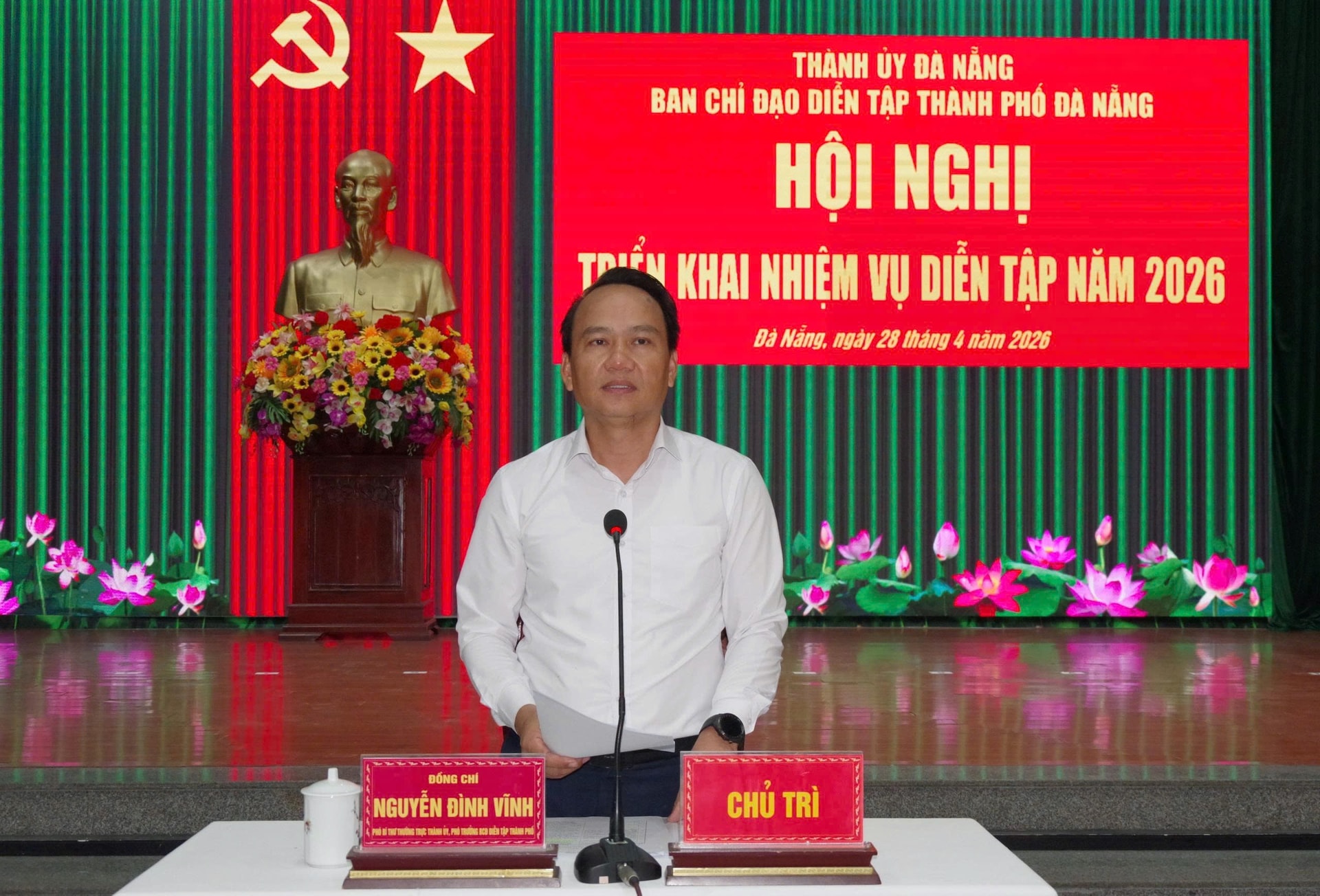 Sáng 28/4, Thành ủy Đà Nẵng tổ chức hội nghị triển khai nhiệm vụ diễn tập năm 2026. Phó Bí thư Thường trực Thành ủy Nguyễn Đình Vĩnh chủ trì hội nghị.