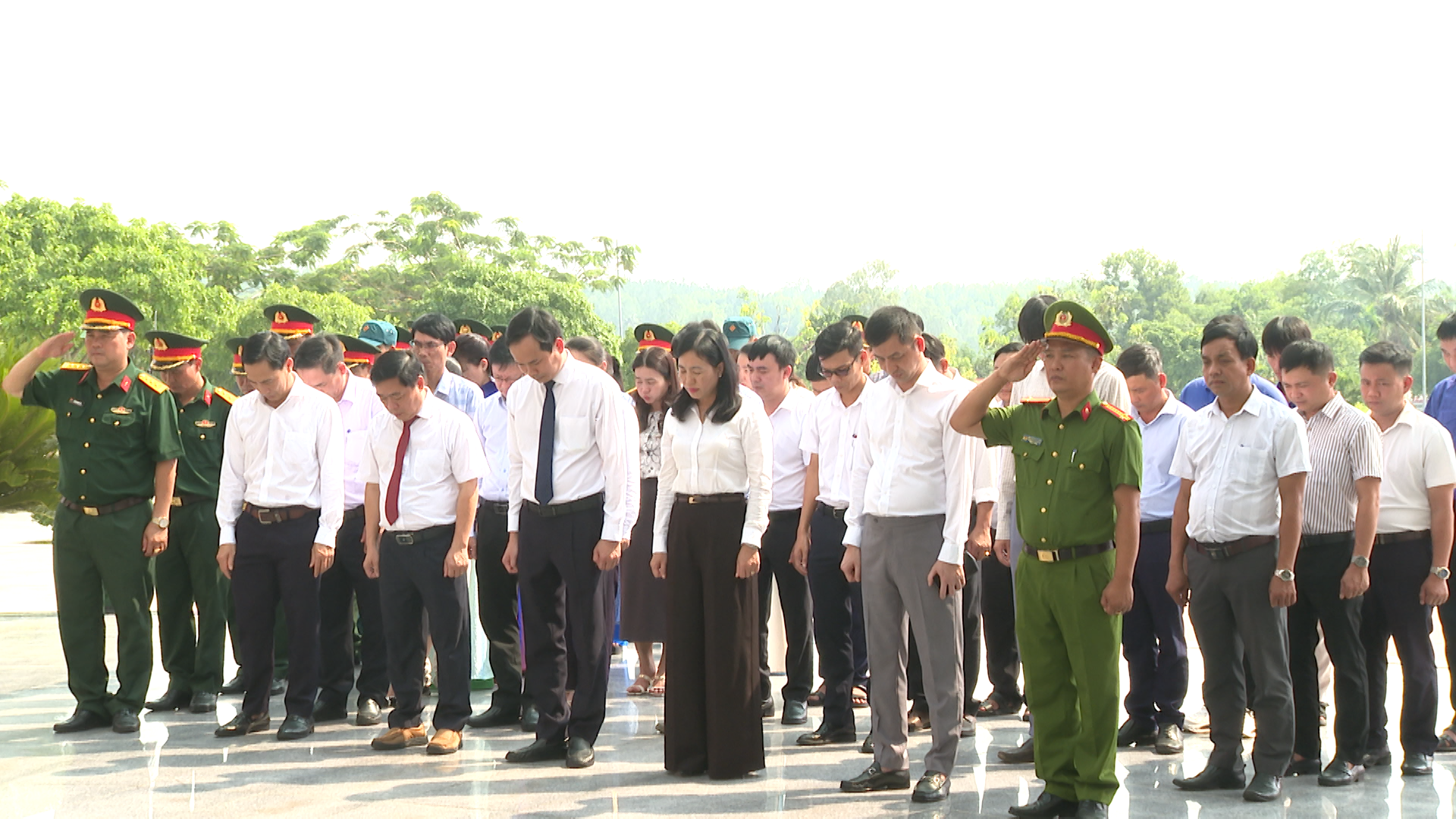 Đoàn đại biểu dành phút mặc niệm tưởng nhớ các anh hùng liệt sĩ. Ảnh: TRUNG HIẾU