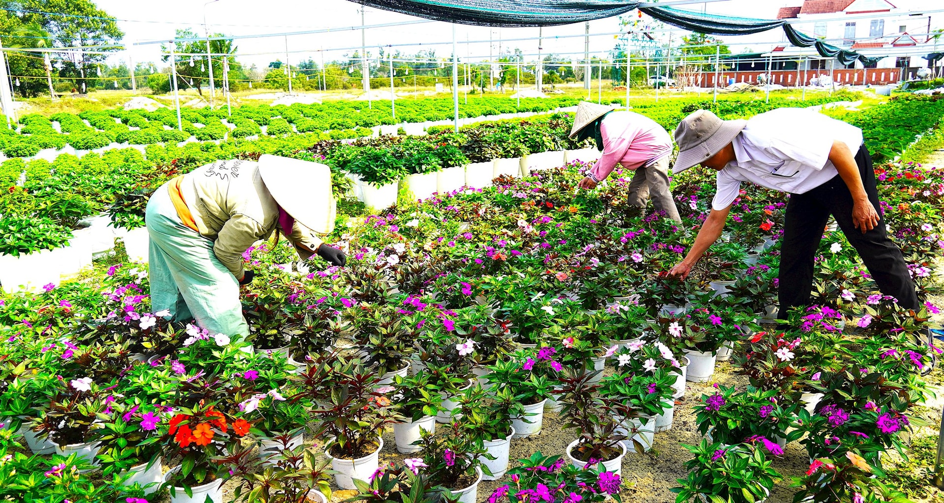 Hướng dẫn người dân chăm sóc, áp dụng kỹ thuật để hoa phát triển đồng đều.