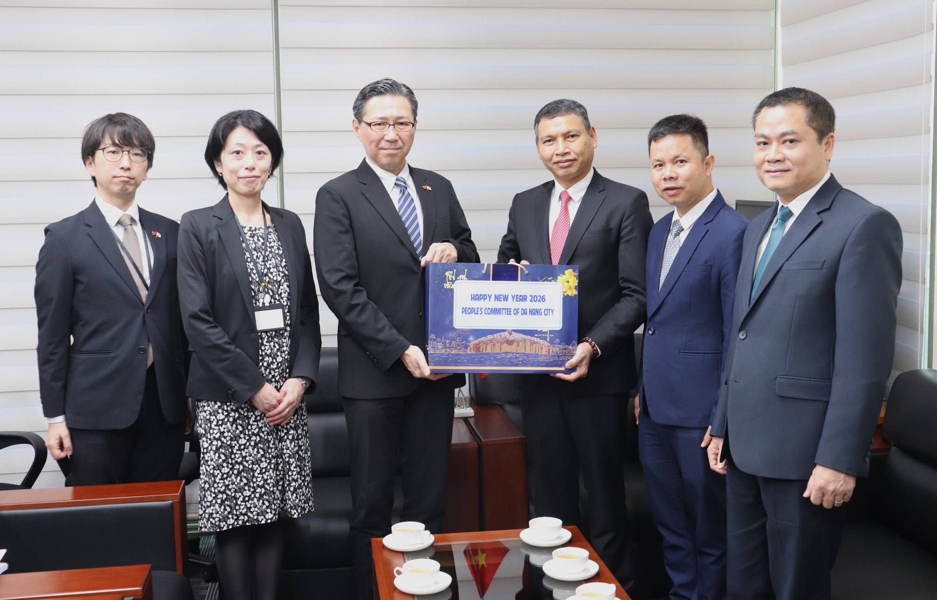 Đến thăm Tổng Lãnh sự quán Nhật tại Đà Nẵng, Phó Chủ tịch Thường trực UBND thành phố Hồ Kỳ Minh gửi lời chúc mừng năm mới 2026 tốt đẹp và cảm ơn cán bộ, nhân viên Tổng Lãnh sự quán tích cực hỗ trợ thành phố Đà Nẵng mở rộng hợp tác với các địa phương và đối tác Nhật Bản.
