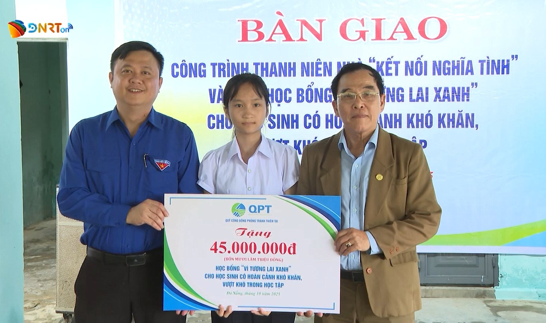 Em Trần Ngọc Thiên Ngân, học sinh trường THCS Trần Quang Khải, phường Hòa Khánh, là một học sinh có hoàn cảnh đặc biệt khó khăn, bố mẹ mất sớm, để lại 4 chị em mồ côi, sinh sống trong một ngôi nhà cũ, bị dột nát, xuống cấp trầm trọng, nhưng em luôn nỗ lực vươn lên trong học tập. Nhờ sự hỗ trợ từ những tấm lòng vàng, công trình sửa chữa nhà cho gia đinh em Ngân, sau thời gian khởi công hơn một tháng, ngôi nhà mới khang trang, ấm áp đã kịp hoàn thành trước mùa mưa bão, trở thành mái ấm vững chãi, tiếp thêm động lực cho em Ngân an tâm học tập, vững bước trên con đường tương lai phía trước. Dịp này, Quỹ Cộng đồng phòng tránh thiên tai đã trao tặng cho đại diện Thành Đoàn Đà Nẵng tổng số tiền hơn 154 triệu đồng hỗ trợ kinh phí sữa chữa nhà Kết nối nghĩa tình cho Đoàn viên thanh niên có hoàn cảnh khó khăn và trao học bổng Vì tương lai xanh cho các em học sinh, sinh viên vượt khó trong học tập, trao 4 học bổng bằng sổ tiết kiệm mỗi sổ 10 triệu đồng cho đại diện các Đoàn Phường Hòa Khánh, Hải Vân, Liên Chiểu và Hải Châu, trao 2 Góc học tập cho học sinh trên địa bàn phường Hòa Khánh. Câu lạc bộ hướng nghiệp Hòa Vang cũng đã trao tặng học bổng trị giá 10 triệu đồng cho em Trần Ngọc Thiên Ngân, là học sinh có hoàn cảnh khó khăn, vươn lên trong học tập./.