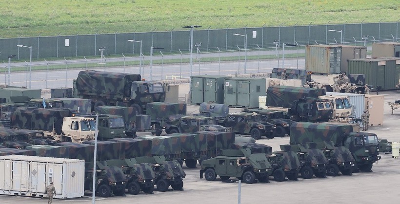 Xe quân sự được triển khai tại căn cứ Humphreys ở Pyeongtaek, phía Nam Thủ đô Seoul
