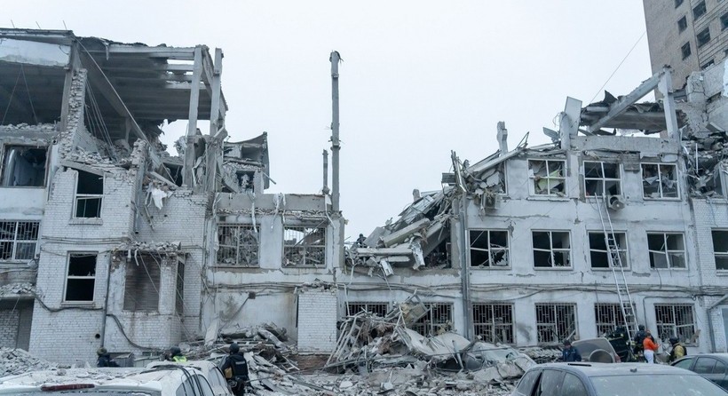 Nhân viên cứu hộ tìm kiếm các nạn nhân trong đống đổ nát của tòa nhà bị trúng tên lửa Nga ở Zaporizhzhia, Ukraine
