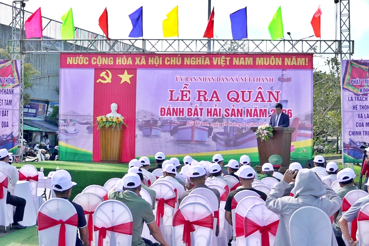 Quang cảnh lễ ra quân đánh bắt hải sản xã Núi Thành năm 2026. Ảnh: HOÀNG ĐẠO