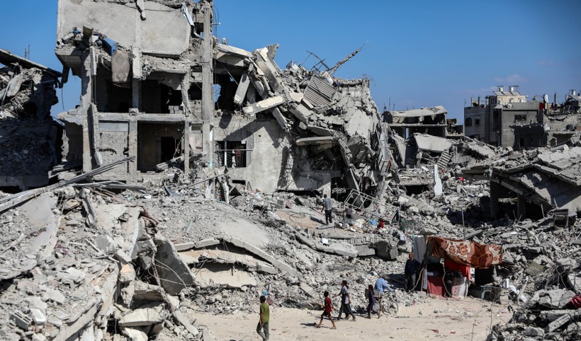 Những tòa nhà bị phá hủy trong xung đột ở phía Bắc Dải Gaza ngày 27/10/2025.