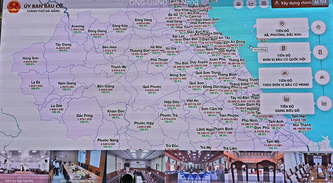 Theo Trung tâm chỉ đạo, điều hành Ủy ban Bầu cử thành phố Đà Nẵng, tính đến 15 giờ 30 ngày 15/3, tỷ lệ cử tri đi bỏ phiếu tại tất cả xã, phường trên địa bàn thành phố trung bình đạt 98,89%; trong đó có 44 phường, xã đạt tỷ lệ 100%, 33 phường, xã đạt từ 99% trở lên. ...