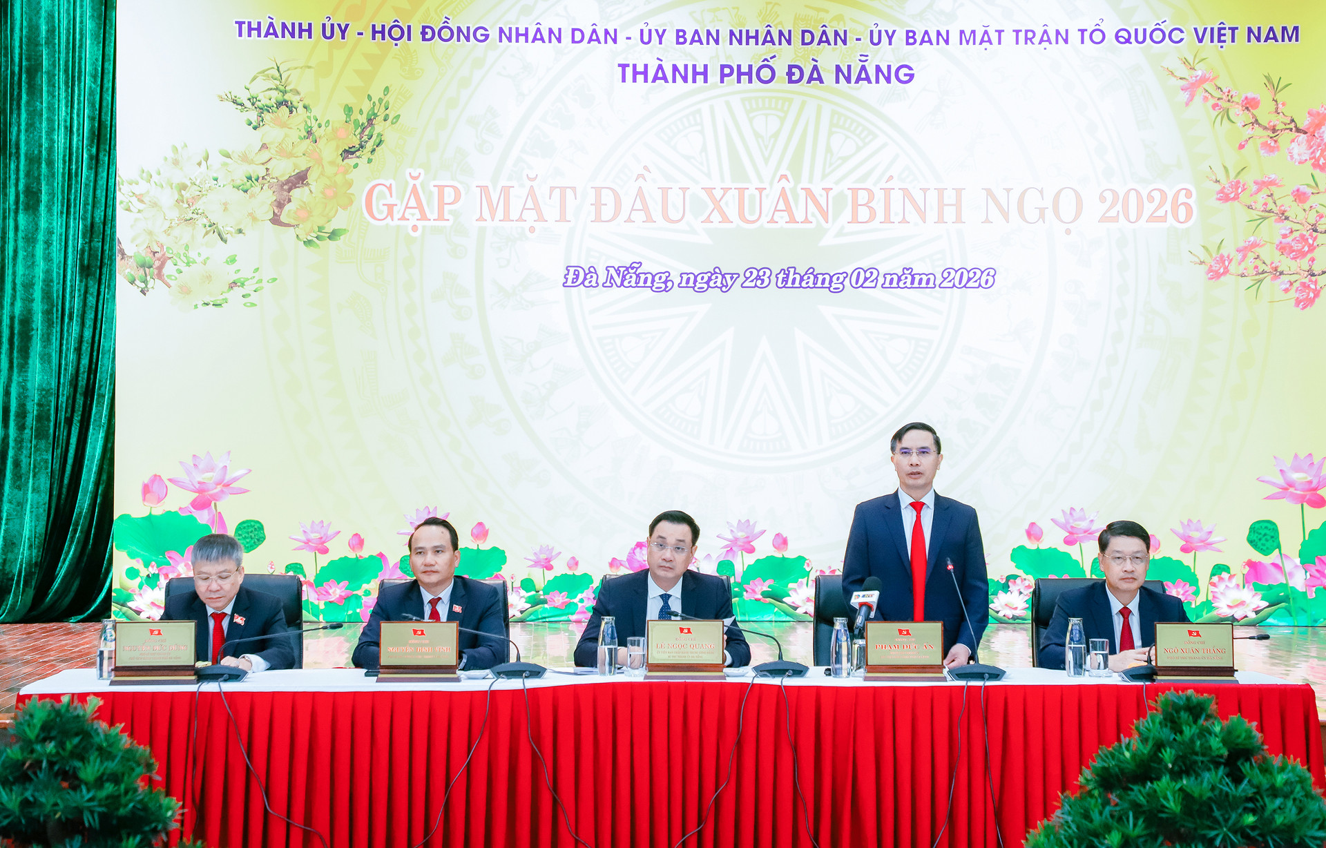 Sáng 23/2 (mùng 7 Tết), Thành ủy, HĐND, UBND, Ủy ban MTTQ Việt Nam thành phố tổ chức gặp mặt đầu năm Xuân Bính Ngọ 2026. Ủy viên Trung ương Đảng, Bí thư Thành ủy Lê Ngọc Quang; Ủy viên Trung ương Đảng, Phó Bí thư Thành ủy, Chủ tịch UBND thành phố Phạm Đức Ấn; Phó Bí thư Thường trực Thành ủy Nguyễn Đ ...