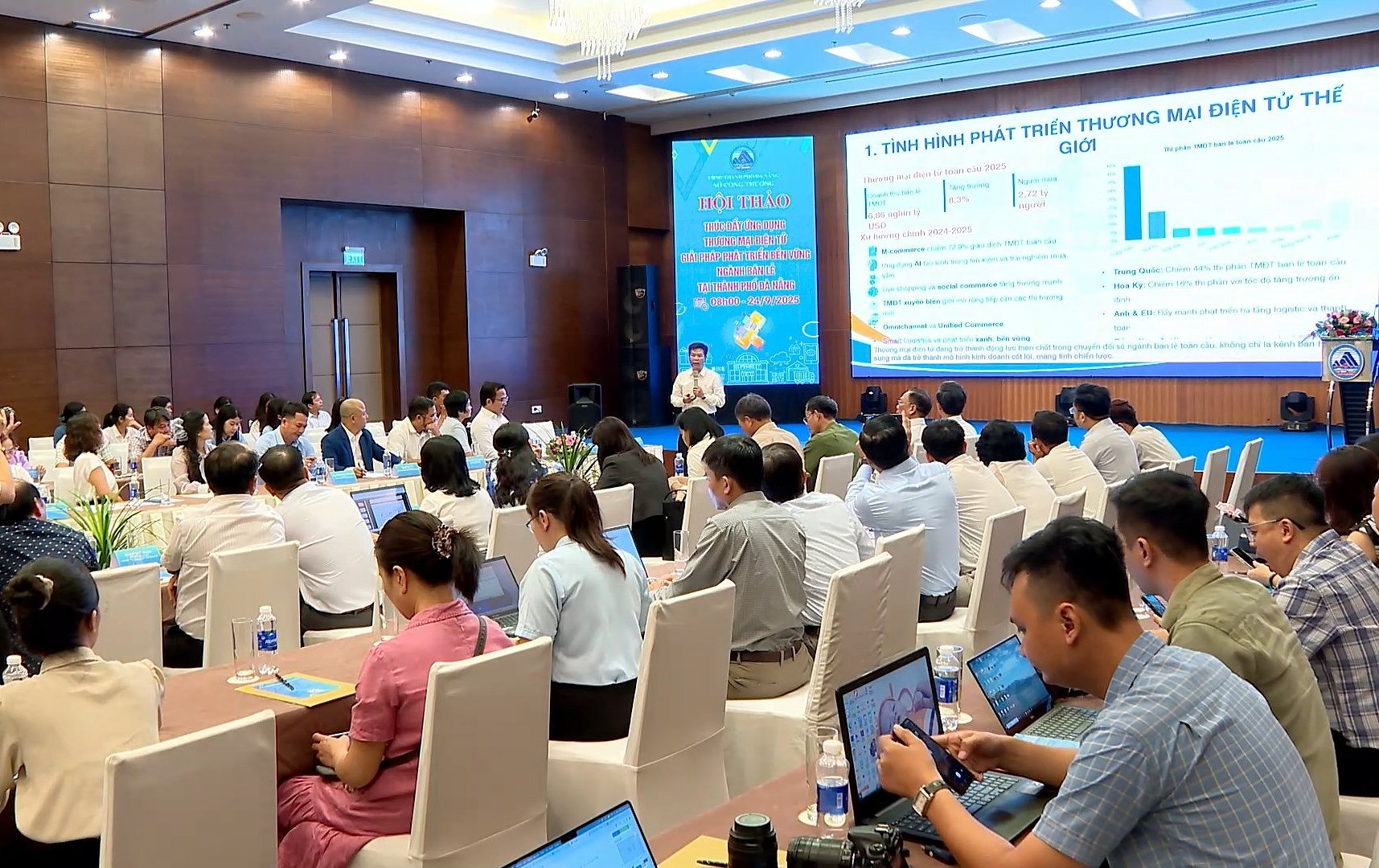 Phát biểu tại hội thảo, Phó Chủ tịch UBND thành phố Trần Chí Cường nhấn mạnh: Đà Nẵng với vai trò là trung tâm kinh tế - xã hội lớn của miền Trung, có điều kiện thuận lợi để phát triển thương mại điện tử mạnh mẽ. Thời gian qua, thành phố đã và đang không ngừng nỗ lực cải thiện môi trường sản xuất, kinh doanh; tích cực hỗ trợ doanh nghiệp đẩy mạnh ứng dụng thương mại điện tử, đặc biệt trong lĩnh vực bán lẻ với hơn 500 siêu thị, trung tâm thương mại và chuỗi cửa hàng tiện lợi, 240 chợ các loại bên cạnh hàng chục nghìn cửa hàng truyền thống, giúp cộng đồng doanh nghiệp, tiểu thương trên địa bàn thành phố ngày càng lớn mạnh, hoạt động hiệu quả. Tuy nhiên, để ngành bán lẻ của thành phố phát triển bền vững trong bối cảnh hội nhập kinh tế quốc tế sâu rộng và áp lực cạnh tranh ngày càng gia tăng, cần sự chung tay của nhiều chủ thể, như cơ quan quản lý, hiệp hội ngành nghề, doanh nghiệp, hợp tác xã, hộ kinh doanh và tiểu thương. TP cũng sẽ tiếp tục triển khai, đẩy mạnh các giải pháp nhằm đưa thương mại điện tử trở thành động lực phát triển mới cho ngành bán lẻ tại địa phương./.