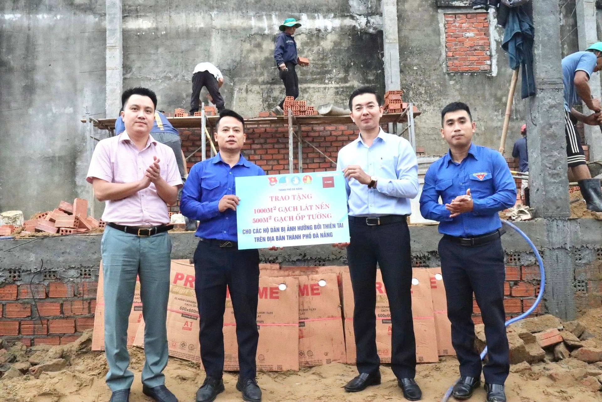 Ban Thường vụ Thành Đoàn Đà Nẵng phối hợp với Công ty Cổ phần Prime Đại Lộc tổ chức trao tặng gạch men hỗ trợ người dân vùng thiên tai sửa chữa nhà, ổn định cuộc sống.