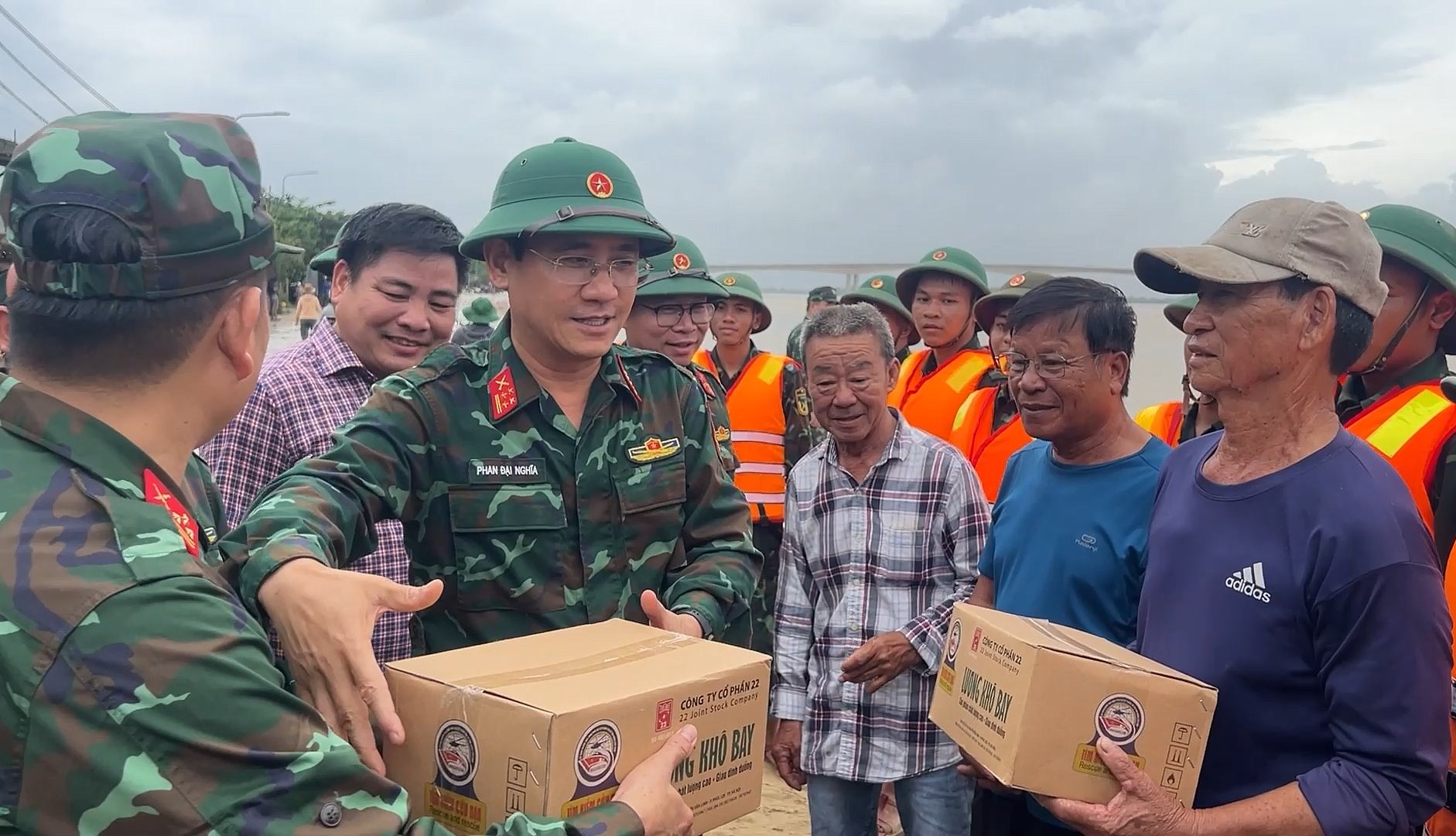 Đại tá Phan Đại Nghĩa, Phó Tư lệnh Quân khu 5 tặng quà cho người dân thôn An Lương